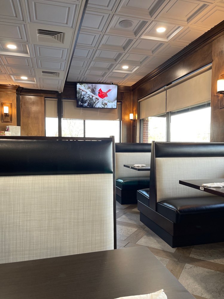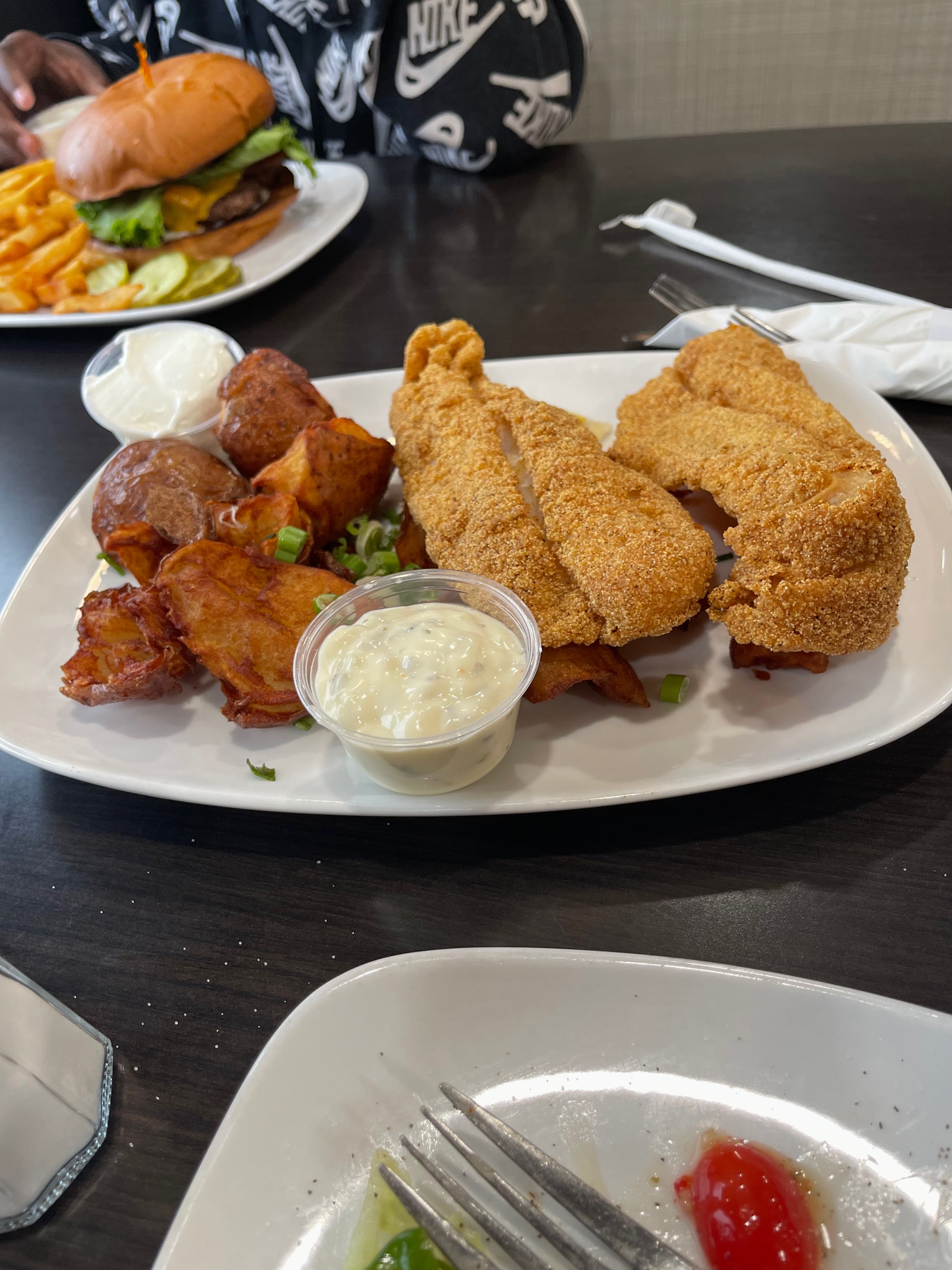The restaurant is nice inside and large portions, but their prices are just not very affordable. For a family of 3 and all got a pretty regular for (burger and fries, tenders and fries and a chicken s